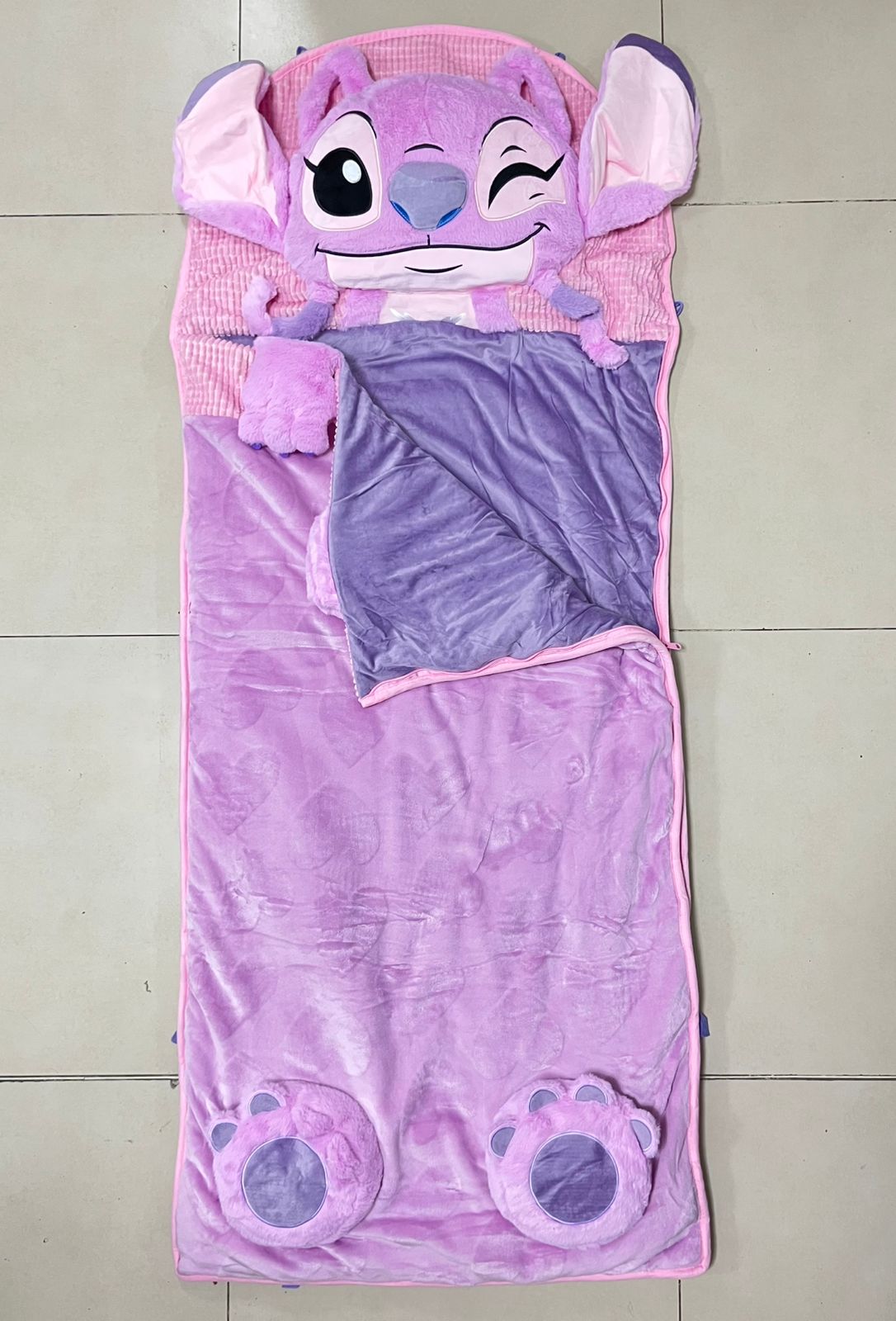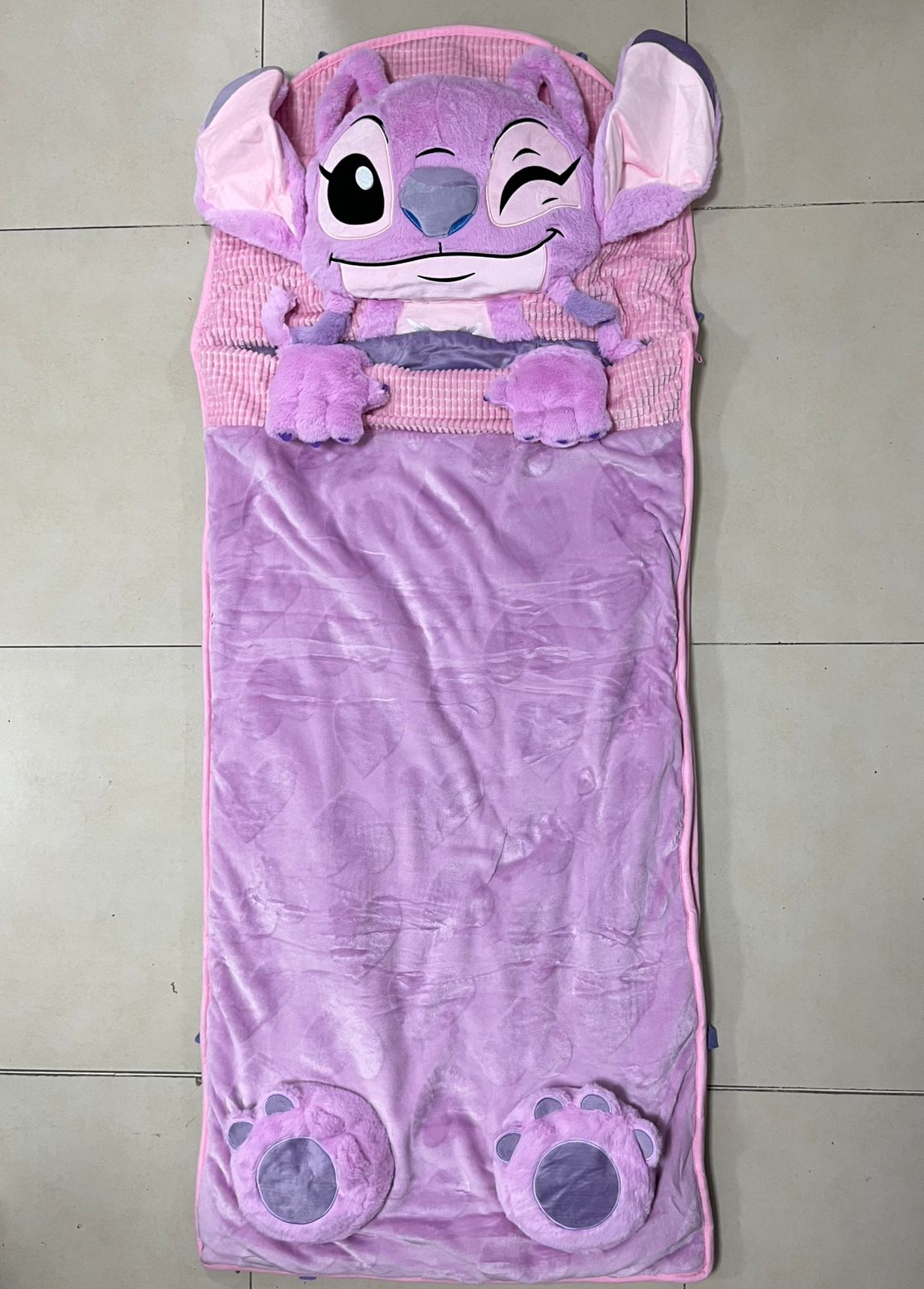 Bolsa para Dormir de Peluche con Almohadón es ideal para jugar, dormir la siesta, fiestas de pijamas, o en cualquier momento. Su versatilidad de tres en uno, almohada cobija y saco, permite que el saco para dormir se pliegue fácilmente y se asegure para convertirlo en almohadón. Fabricada en felpa súper suave de primera calidad y rellena de algodón compacto, cálido, y para todas las estaciones. Puede lavarse a máquina en el ciclo delicado.