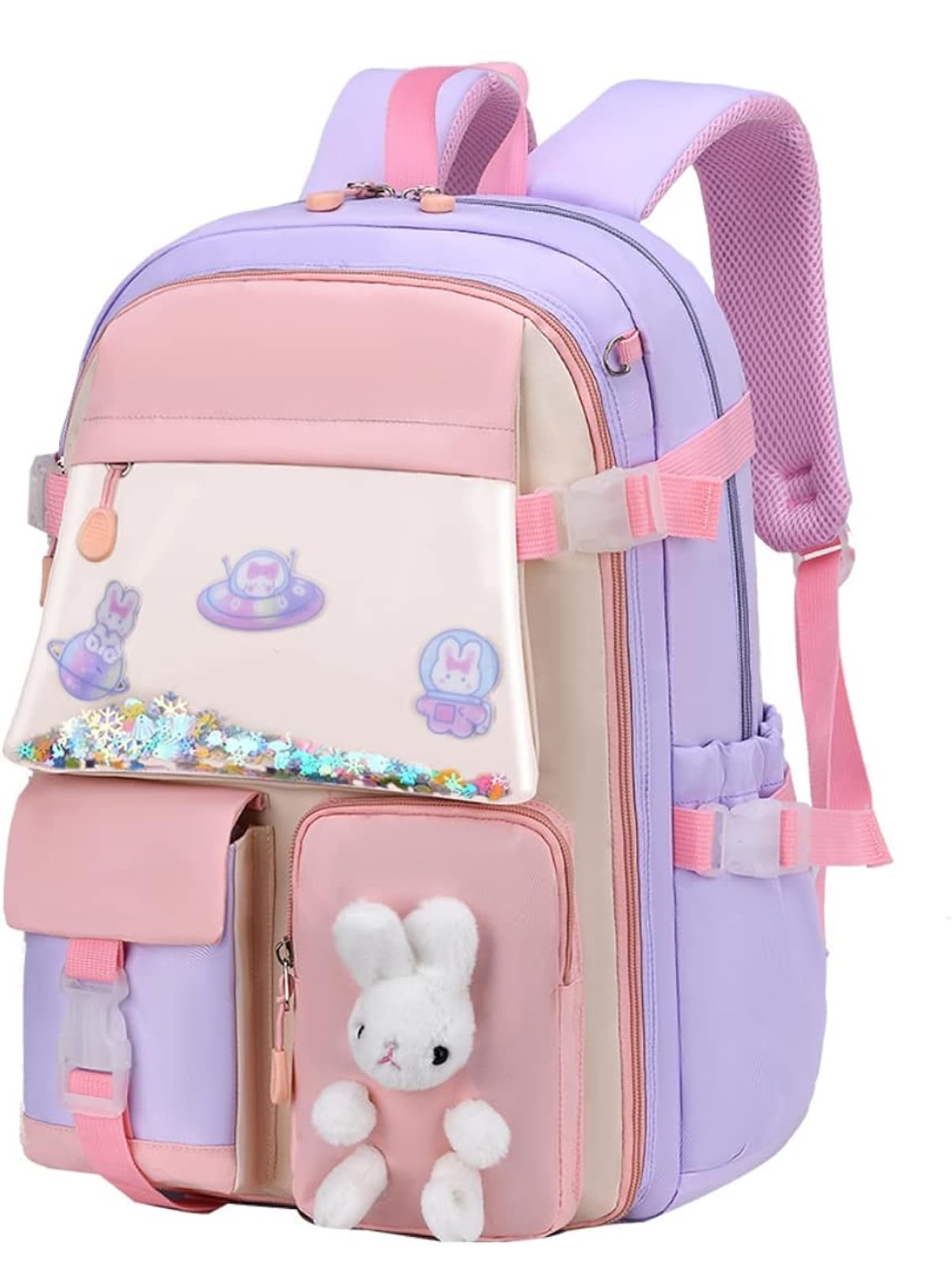 ☺️Hecho de nailon satinado resistente al agua de alta densidad, tela con purpurina, poliéster, fácil de limpiar, muy lindo para niñas, bolsa de libros escolares