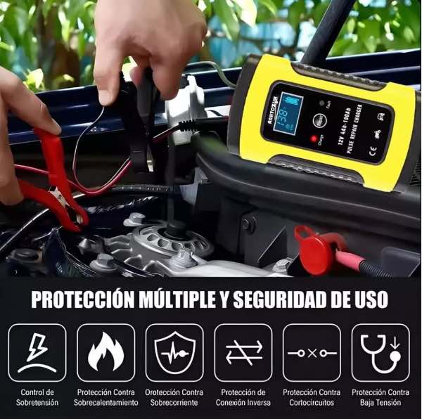 Múltiples protecciones: protección contra sobretensiones, protección de conexión inversa (por conexión incorrecta de polos positivo y negativo), protección contra cortocircuitos, protección contra sobrecorriente, protección contra sobrecalentamiento y protección contra subtensión.