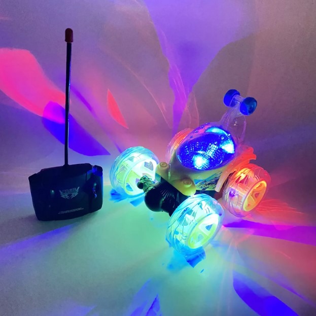Espectacular carro a control remoto con 15 metros de alcance, capacidad de giro de 360 grados,ideal para divertirse jugando con este vehículo durante horas dado que trae una batería recargable de gran duración, incluye luces en las llantas que le dan una hermosa apariencia y ademas trae un circuito emisor de sonidos que harán mas divertido interactuar con este. El vehículo incluye en su parte delantera con un sistema de 360 grados que permite que pueda cambiar de dirección fácilmente, hasta cuando este se encuentre de cabeza ya que incluye un par de llantas en la parte superior trasera que al apoyarse en estas pueda seguir andando y así no tendrá que parar de jugar para ir a reacomodarlo.