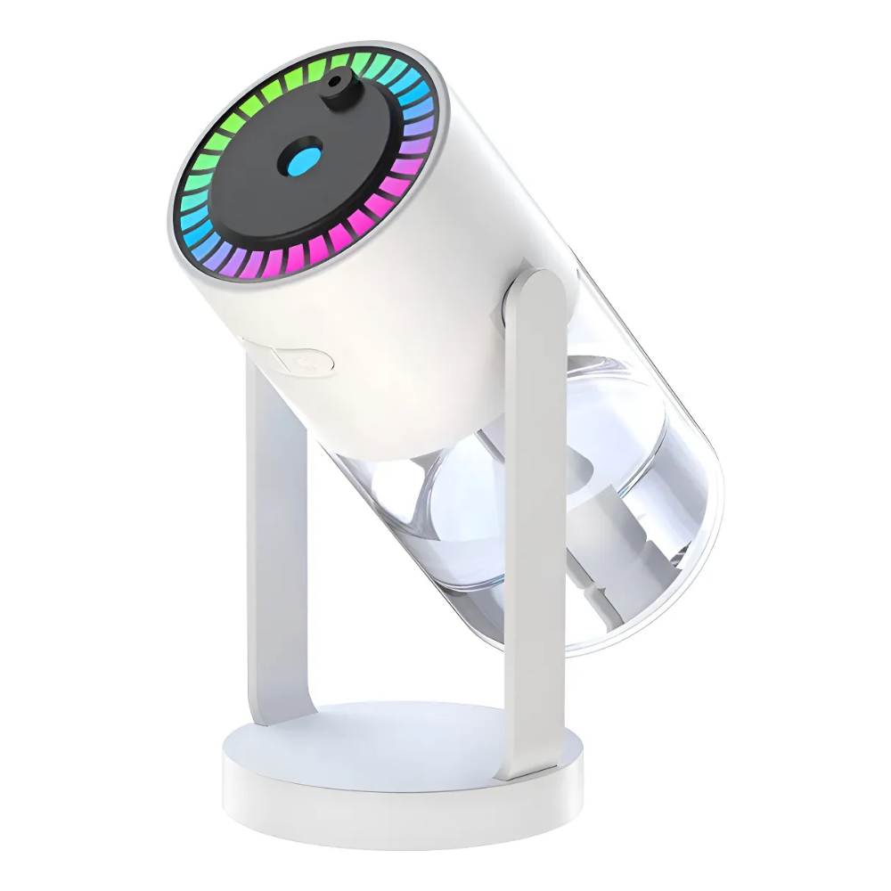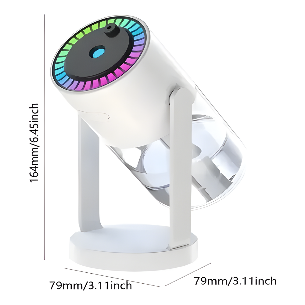 El funcionamiento ultrasónico convierte el agua y los aceites esenciales en una fina niebla aromática que purifica y humedece el aire, mejorando la sensación de bienestar. Su proyector LED integrado ofrece una experiencia visual envolvente que aporta tranquilidad y estilo, convirtiendo este difusor en un elemento tanto funcional como decorativo.