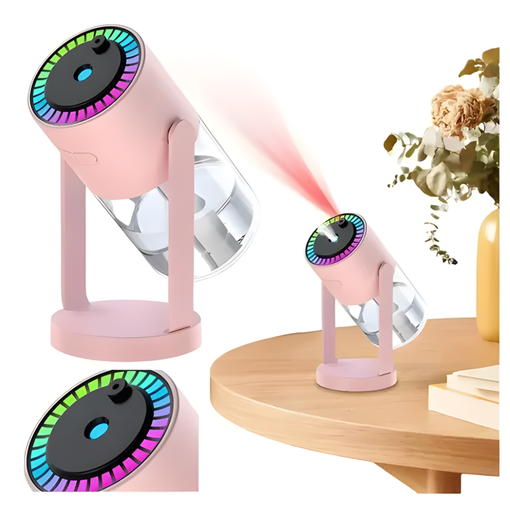 Este difusor de aromas ultrasónico con proyección LED transforma cualquier espacio en un ambiente relajante y lleno de armonía. Su diseño moderno combina tecnología de humidificación con un sistema de luces que proyecta efectos visuales suaves y coloridos, ideales para crear una atmósfera cálida en dormitorios, salas o áreas de descanso.