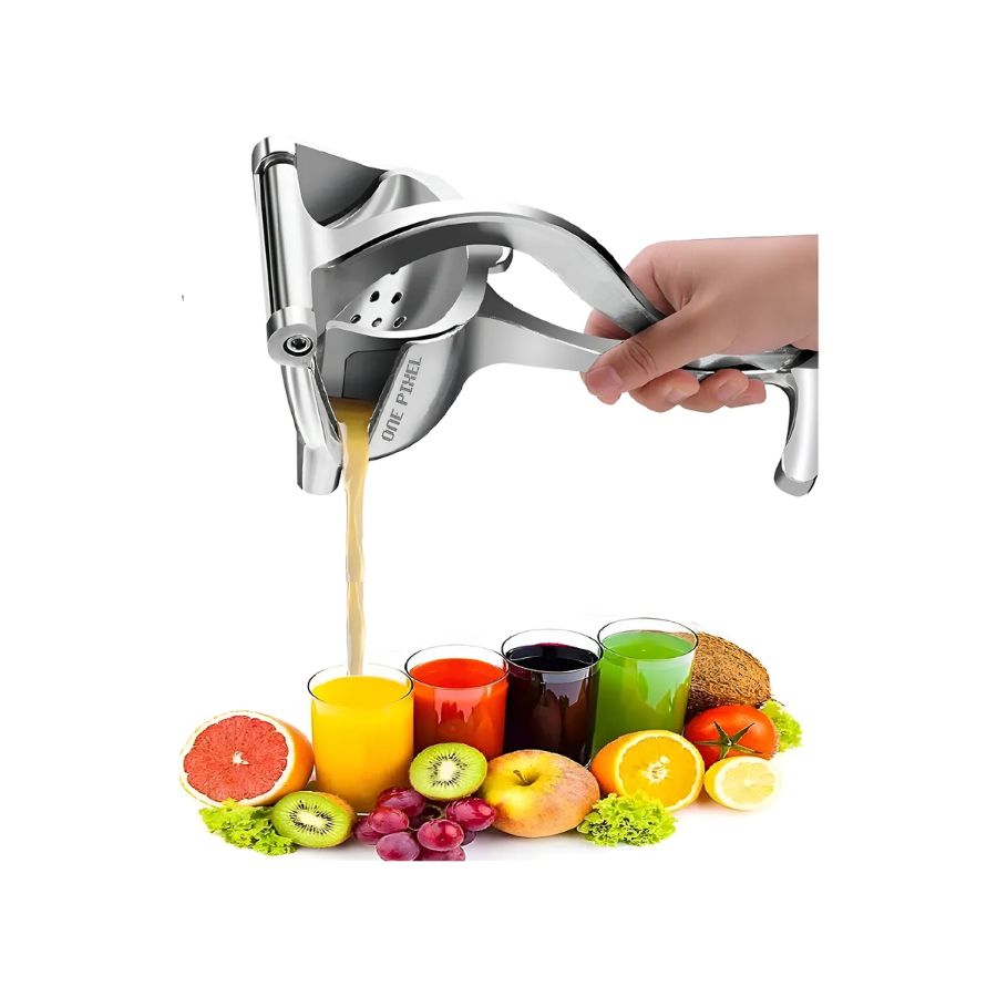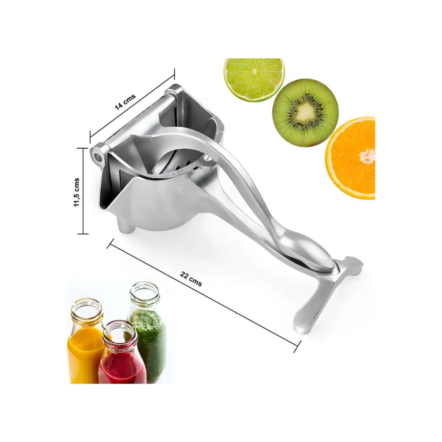 🔹 Características principales ✅ Material: aluminio de alta resistencia ✅ Uso: manual (sin electricidad) ✅ Sistema de presión con palanca reforzada ✅ Filtro interno desmontable para separar semillas y pulpa ✅ Ideal para frutas cítricas: naranja, limón, mandarina, toronja ✅ Base estable antideslizante ✅ Medidas: 22 × 11 × 10 cm aprox. ✅ Peso: 760 g aprox. ✅ Color: plateado metálico