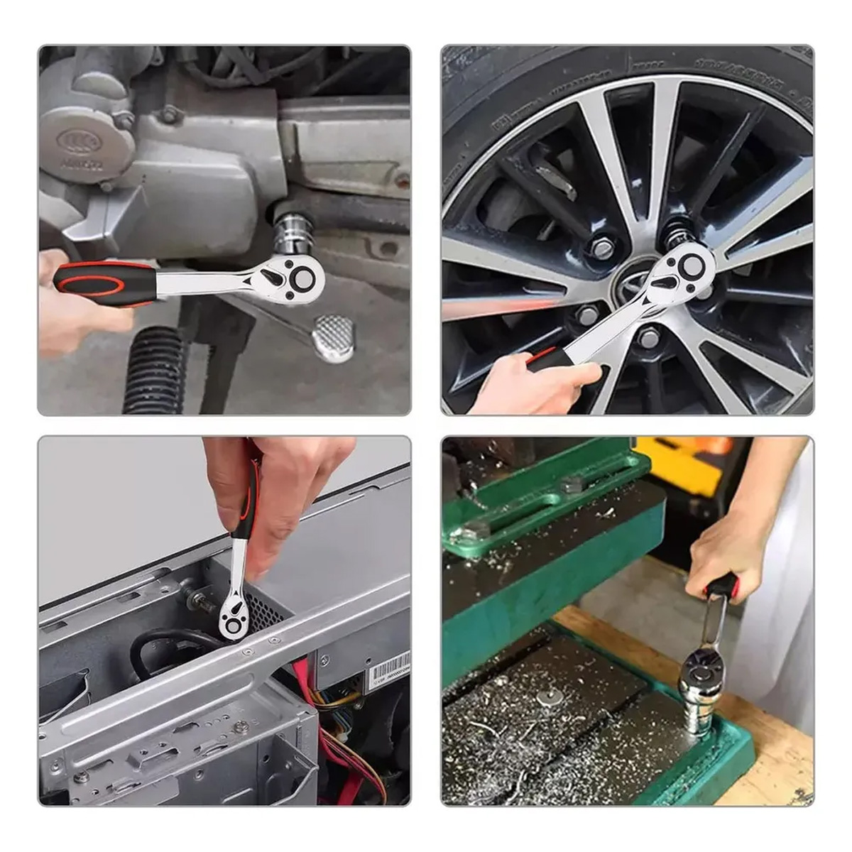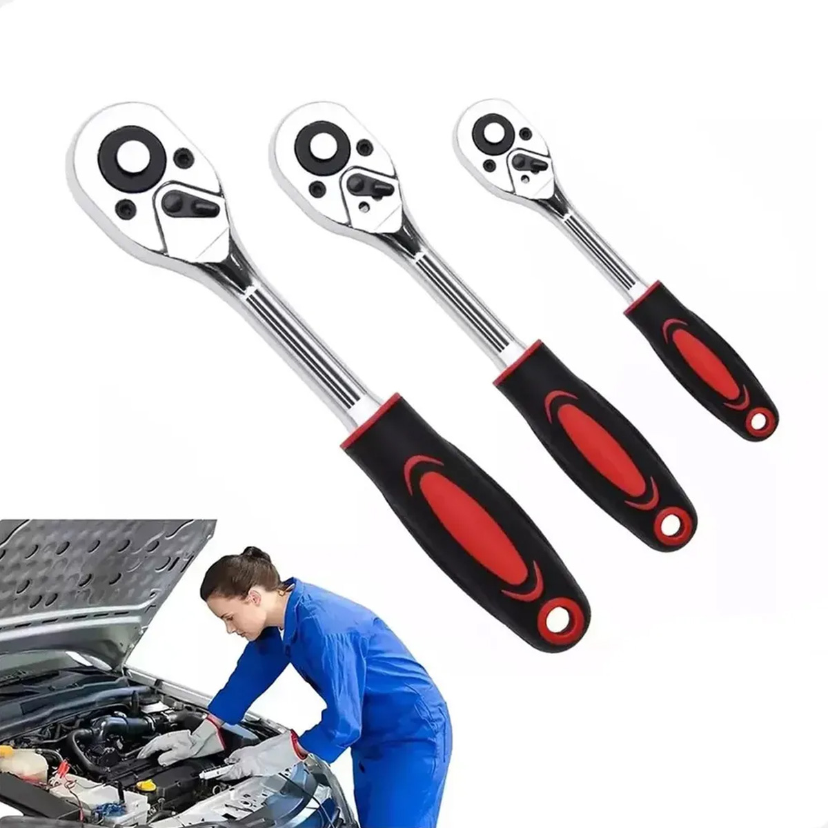 Fácil de operar: kit de trinquete de 24 dientes (1/4 pulgadas, 3/8 pulgadas, 1/2 pulgadas) proporciona un funcionamiento suave y una precisión de viaje más rápida. El mango de trinquete puede girar en áreas de trabajo estrechas y estrechas.