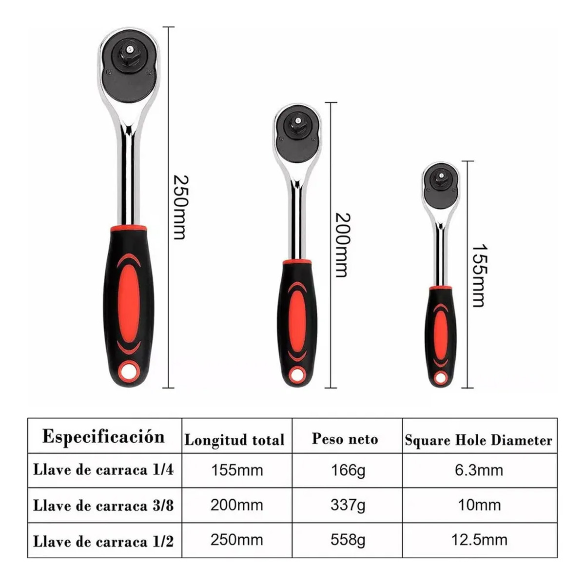 Especificaciones del producto: nuestro kit de llaves de trinquete totalmente pulido.