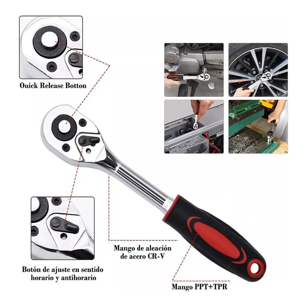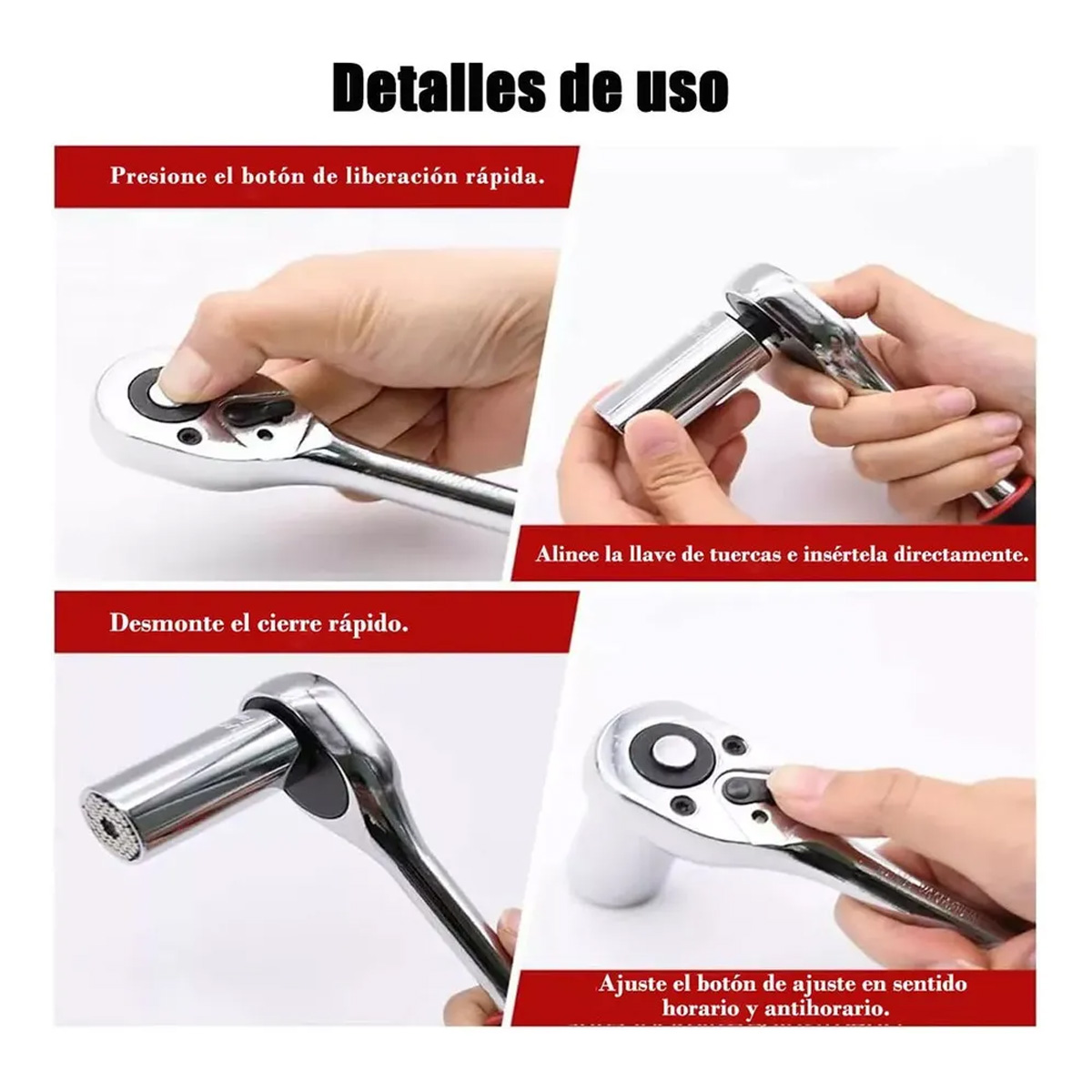 Dispositivo de cierre rápido: la barra de trinquete invertida es un poco más larga que la de algunas llaves, se puede mover fácilmente con un toque del pulgar y el botón de liberación garantiza que la funda permanezca abierta hasta que quieras quitarla.