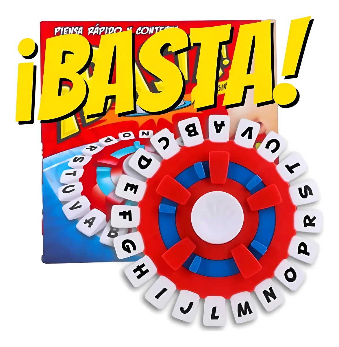 El juego de mesa ¡BASTA! pone a prueba tu mente y velocidad. Gira la ruleta, selecciona una letra y contesta lo más rápido posible con palabras que empiecen por esa letra según la categoría que salga en las cartas.