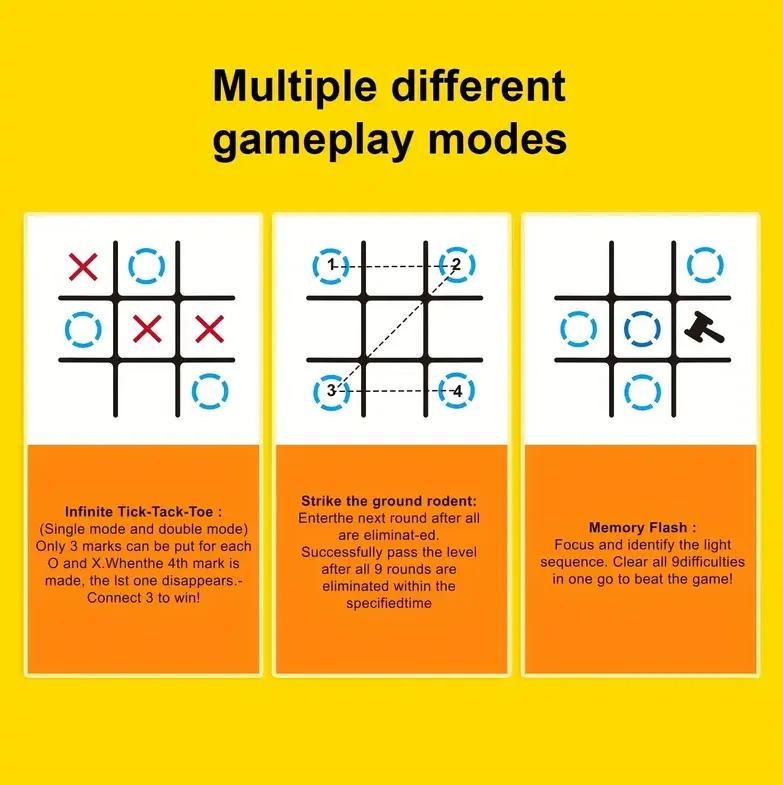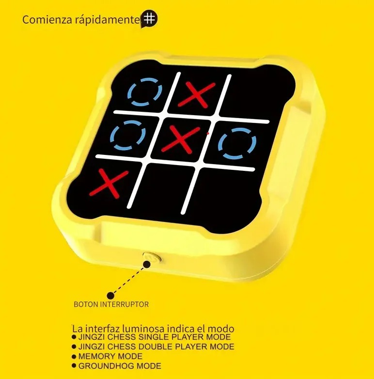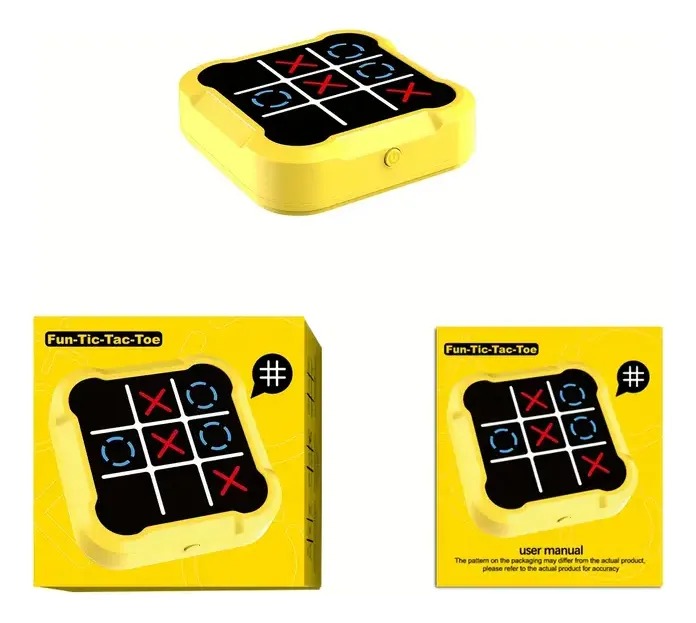 es un juego de mesa electrónico y portátil llamado "Fun-Tic-Tac-Toe", que es una versión del clásico juego "Tres en raya" o "Triqui".