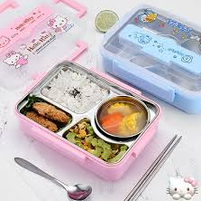 Caja bento de cuatro compartimentos: El diseño de separación es bueno para que traiga diferentes tipos de alimentos para su almuerzo.
