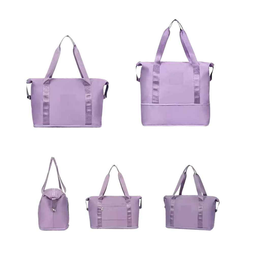 El producto en la imagen es un bolso de viaje o deportivo de gran capacidad, a menudo descrito como multifuncional, expandible e impermeable. Es ideal para viajes cortos, gimnasio o actividades diarias debido a su diseño con múltiples compartimentos, incluyendo uno para zapatos y otro para ropa húmeda o toallas.