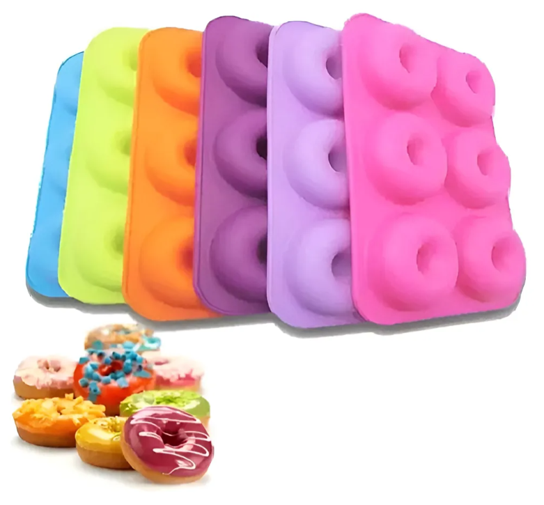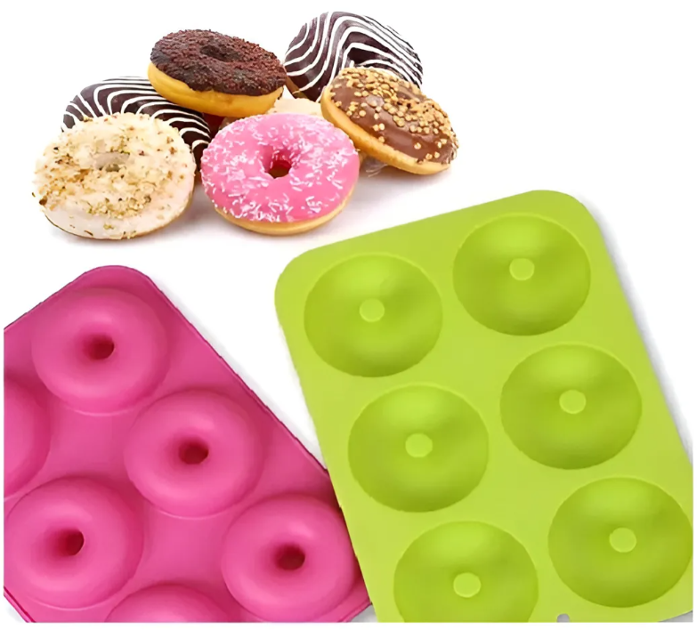 Molde de silicona firme, flexible y duradero, ideal para preparar donas perfectas de forma rápida y sencilla. Resistente al calor, puede usarse en microondas, horno, congelador y lavavajillas sin deformarse. Su superficie antiadherente permite un desmolde fácil y una limpieza práctica. Compacto y fácil de guardar, es el accesorio ideal para los amantes de la repostería casera.