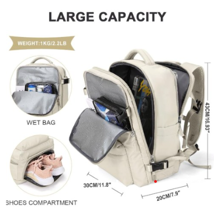 Ampliable: La mochila tiene un diseño de expansión con cremallera. Después de abrir la cremallera de expansión, la capacidad es equivalente a la de una maleta con ruedas de 20 pulgadas, ¡lo que hace que viajar sea más conveniente!