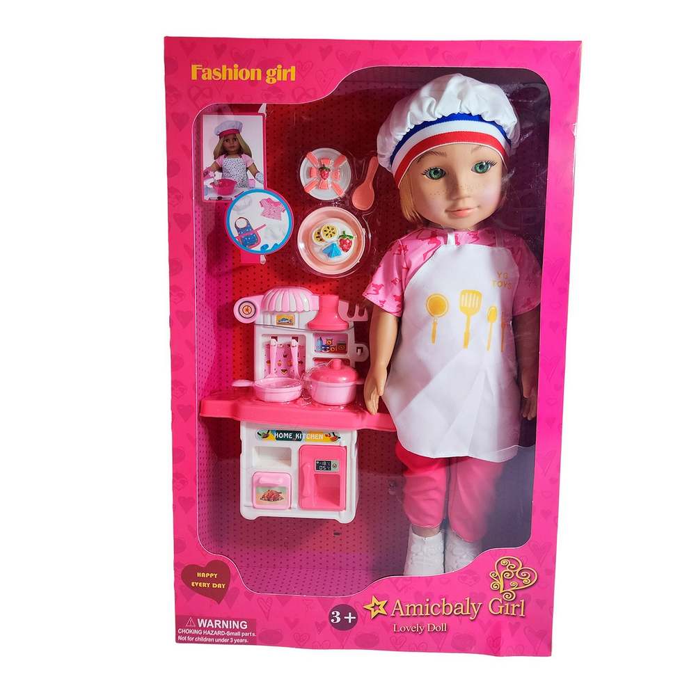 Inspira a la futura gran chef de la casa con este fabuloso set de muñeca y cocina "Amicbaly Girl Lovely Doll". Esta adorable "Fashion Girl", con sus dulces pecas y ojos brillantes, viene perfectamente vestida para la ocasión con su gorro de chef, delantal "YG Toys" y un moderno conjunto rosa. Está lista para preparar sus mejores recetas en su propia estación "Home Kitchen" rosa y blanca, que incluye horno, estufa, y una variedad de accesorios como ollas, sartenes, tetera, utensilios y platos con comida. Es el regalo ideal para niñas mayores de 3 años, garantizando un "Happy Every Day" lleno de juego imaginativo y diversión culinaria.