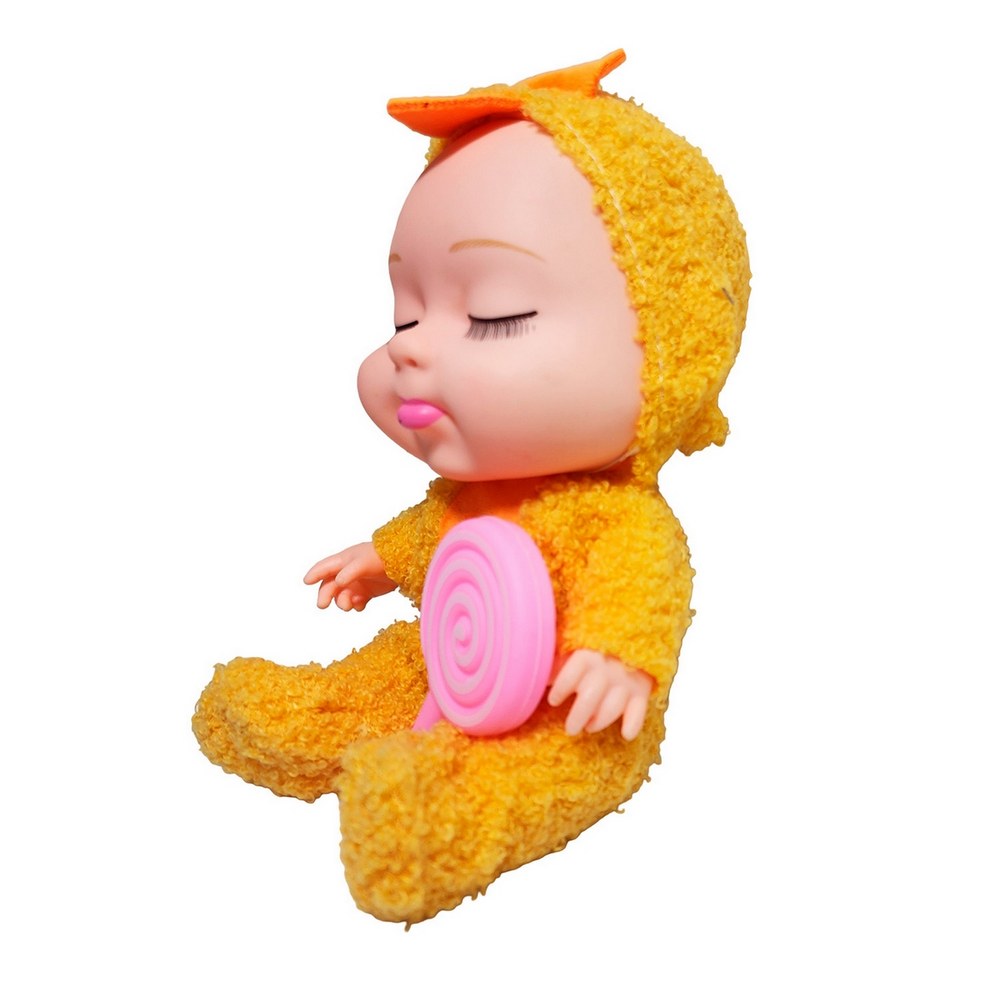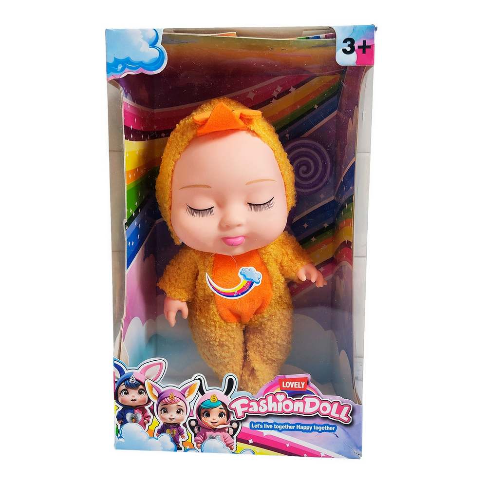 Descubre la máxima ternura con esta "Lovely Fashion Doll" de la colección "Let's live together Happy together". Esta adorable muñeca bebé robará corazones con su dulce expresión dormida y sus largas pestañas, perfecta para inspirar el juego de cuidado y los dulces sueños. Viene vestida con un mameluco de peluche increíblemente suave, con una tierna capucha. Para completar su look, esta soñolienta bebé trae consigo una gran paleta rosa en forma de espiral, convirtiéndose en la compañera más dulce y acogedora para niñas mayores de 3 años.