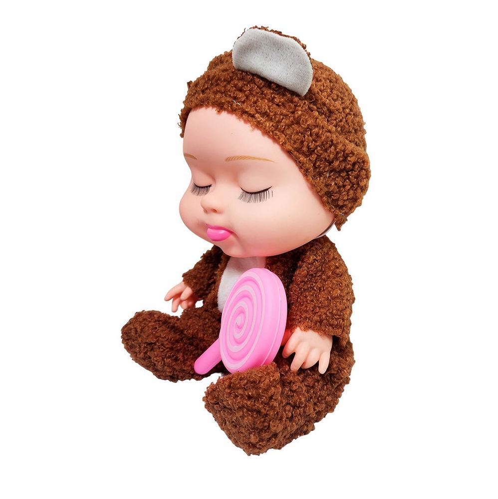 Descubre la máxima ternura con esta "Lovely Fashion Doll" de la colección "Let's live together Happy together". Esta adorable muñeca bebé robará corazones con su dulce expresión dormida y sus largas pestañas, perfecta para inspirar el juego de cuidado y los dulces sueños. Viene vestida con un mameluco de peluche increíblemente suave, con una tierna capucha. Para completar su look, esta soñolienta bebé trae consigo una gran paleta rosa en forma de espiral, convirtiéndose en la compañera más dulce y acogedora para niñas mayores de 3 años.