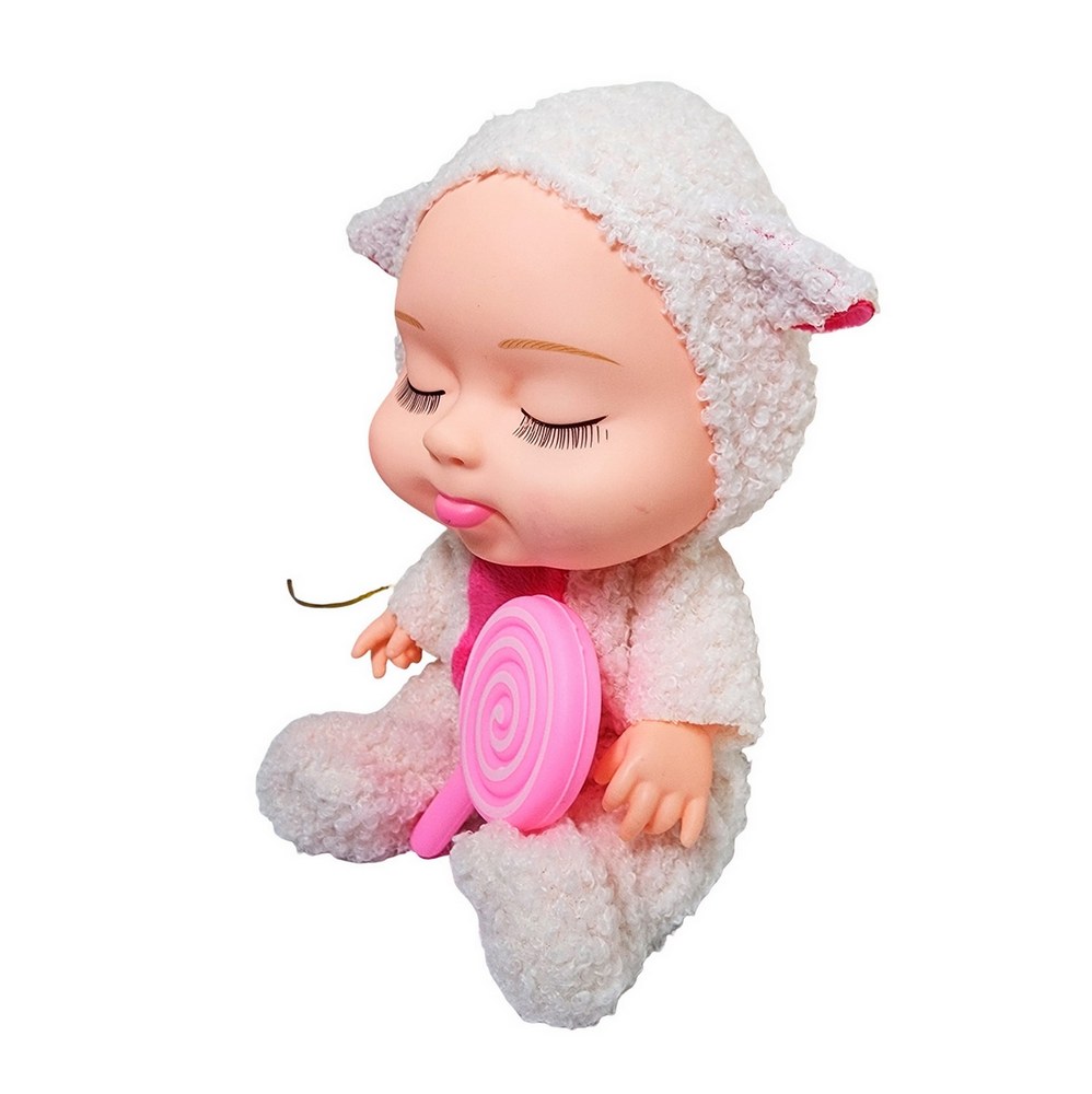 Descubre la máxima ternura con esta "Lovely Fashion Doll" de la colección "Let's live together Happy together". Esta adorable muñeca bebé robará corazones con su dulce expresión dormida y sus largas pestañas, perfecta para inspirar el juego de cuidado y los dulces sueños. Viene vestida con un mameluco de peluche increíblemente suave, con una tierna capucha. Para completar su look, esta soñolienta bebé trae consigo una gran paleta rosa en forma de espiral, convirtiéndose en la compañera más dulce y acogedora para niñas mayores de 3 años.