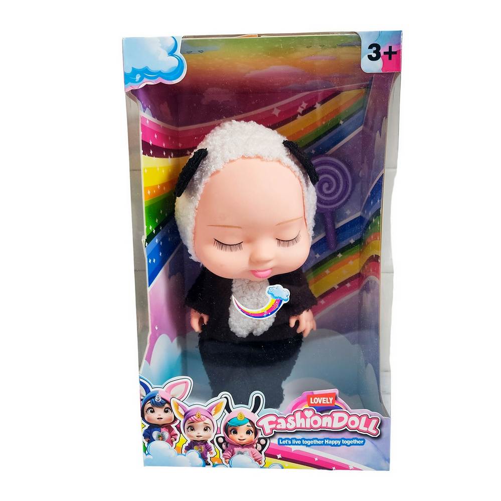 Descubre la máxima ternura con esta "Lovely Fashion Doll" de la colección "Let's live together Happy together". Esta adorable muñeca bebé robará corazones con su dulce expresión dormida y sus largas pestañas, perfecta para inspirar el juego de cuidado y los dulces sueños. Viene vestida con un mameluco de peluche increíblemente suave, con una tierna capucha. Para completar su look, esta soñolienta bebé trae consigo una gran paleta rosa en forma de espiral, convirtiéndose en la compañera más dulce y acogedora para niñas mayores de 3 años.