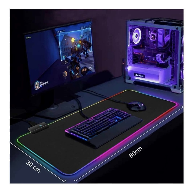 - 1 Pad Mouse Gamer Aoas Con Luces Extra Largo 30cm x 80cm Negro