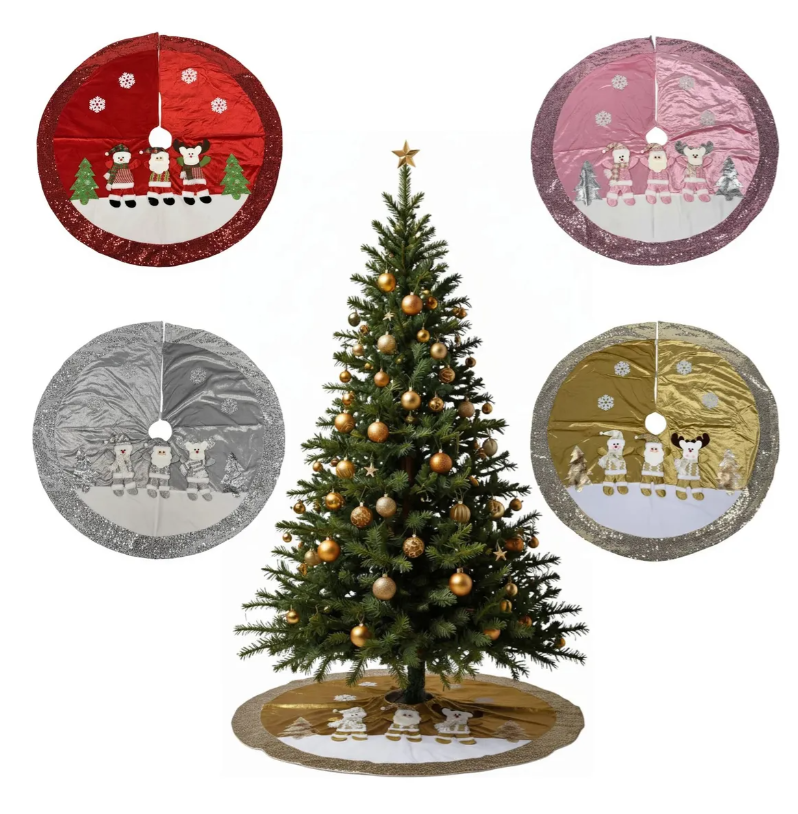 Haz que tu árbol luzca espectacular esta Navidad con esta elegante falda decorativa. Su diseño con muñecos navideños y bordes brillantes aporta un toque festivo y acogedor a cualquier rincón del hogar.