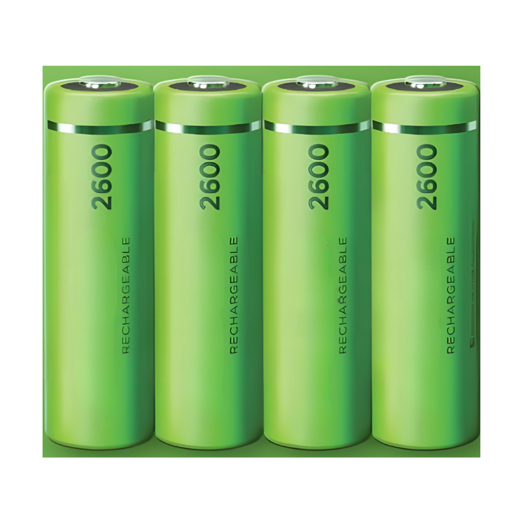 esta pila recargable tipo AA ofrece una excelente capacidad de 2600 mAh, ideal para dispositivos de alto consumo energético. gracias a su tecnología de níquel e hidruro metálico (Ni-MH), proporciona un suministro continuo y estable sin efecto memoria.