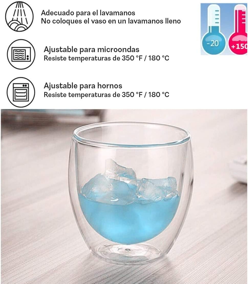 Fabricados con vidrio de borosilicato de alta calidad, estos vasos tienen una doble pared que ayuda a mantener tus bebidas frías o calientes durante más tiempo. Además, el vidrio de borosilicato es resistente a roturas y arañazos, lo que los hace más duraderos y perfectos para el uso diario.