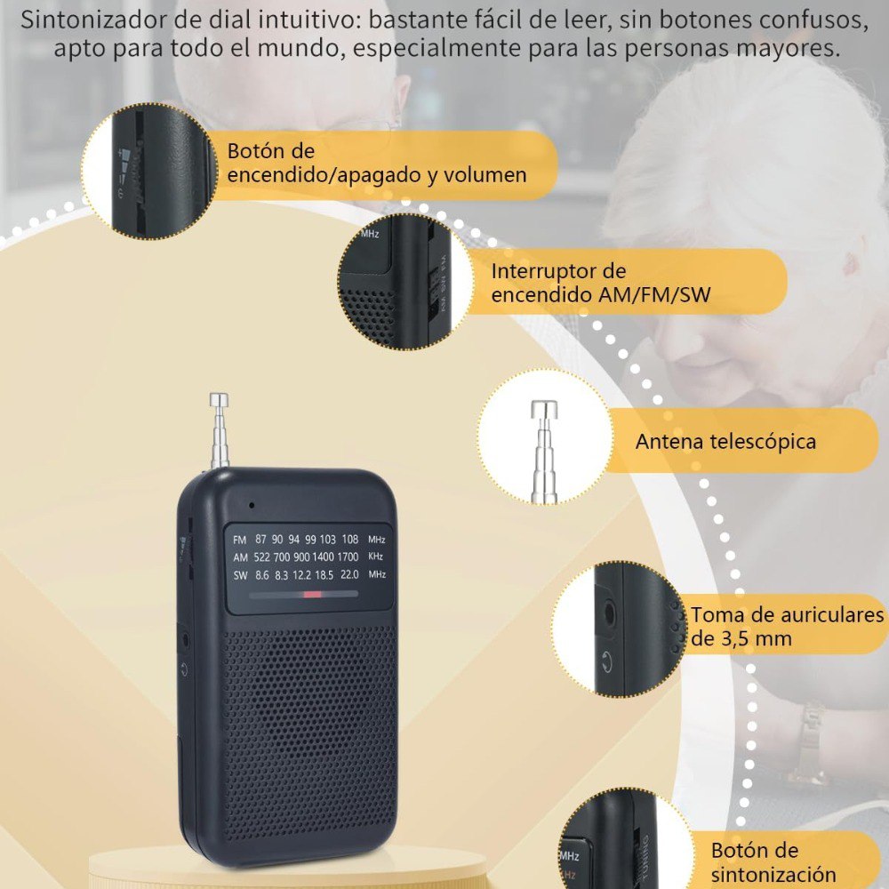- Bandas AM/FM/SW: Sintoniza fácilmente una amplia variedad de estaciones locales con su dial analógico de alta precisión.