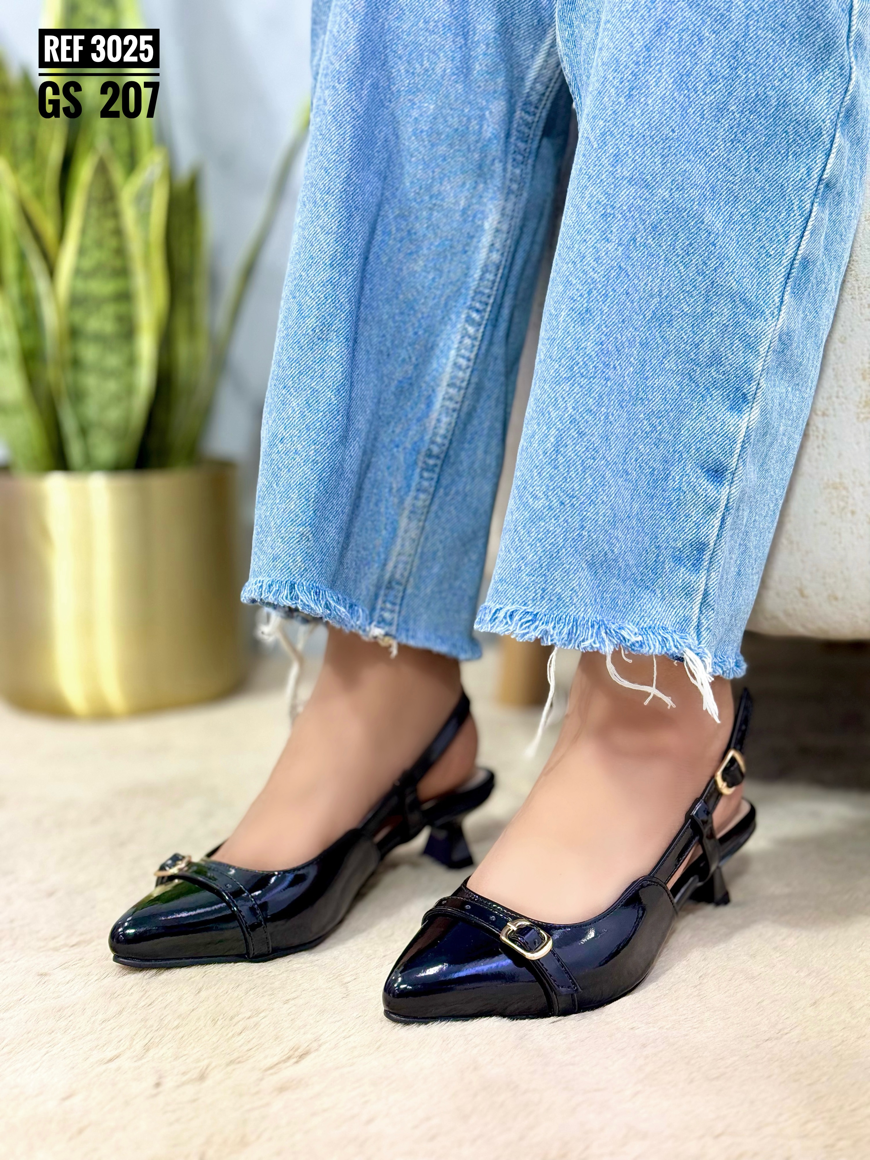 son perfectos para lucir en la oficina, eventos o salidas casuales. Su acabado brillante y tacón bajo proporcionan comodidad sin perder el toque fashion que caracteriza a Milagros Moda.