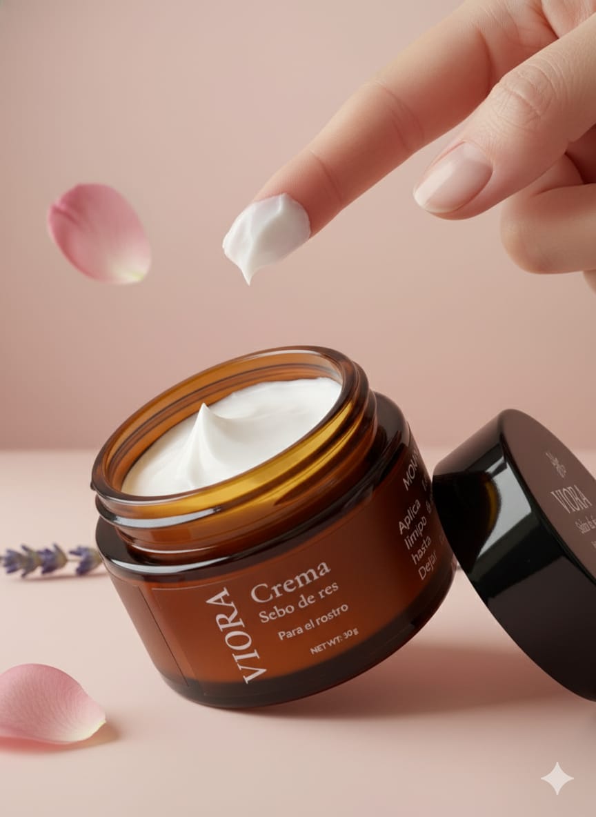 Descubre el poder ancestral del sebo de res combinado con la ciencia moderna. Nuestra crema Viora es una fórmula premium enriquecida con los activos más potentes para el cuidado de tu piel.