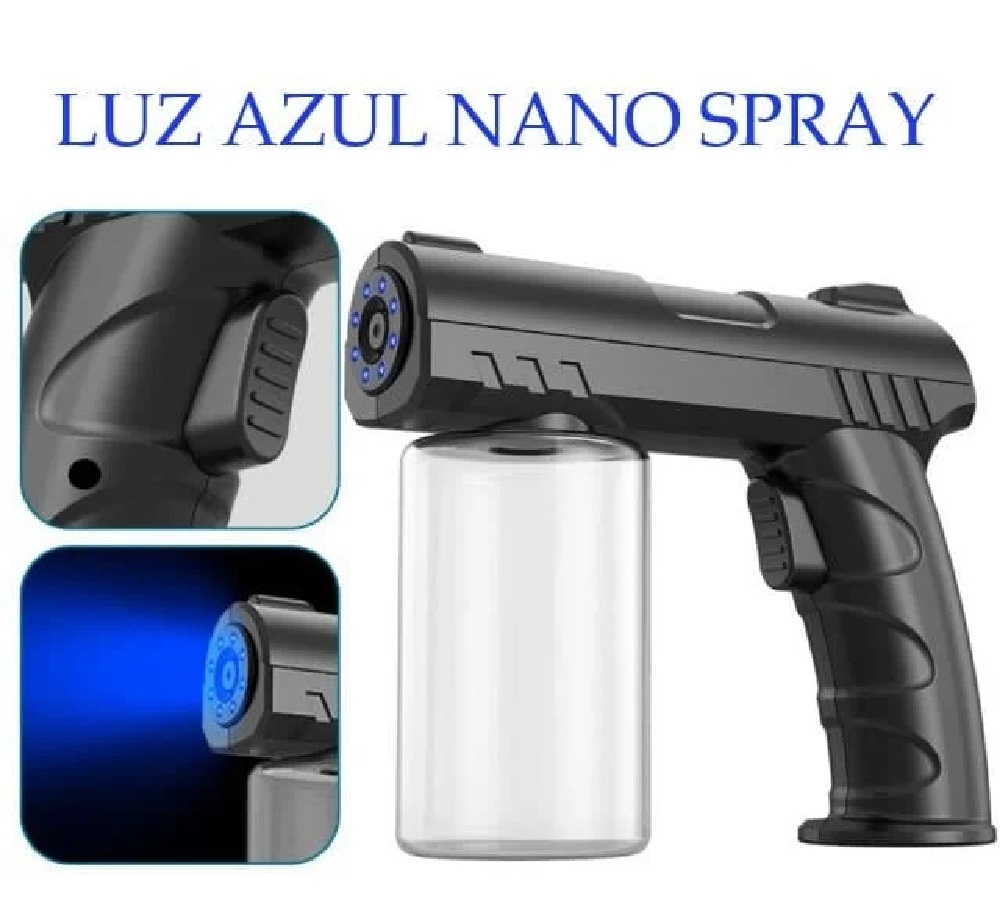 Atomizador eléctrico portátil tipo nano, diseñado para una pulverización fina y uniforme. Ideal para múltiples usos en el hogar, oficina, vehículos, espacios comerciales o personales. Gracias a su tecnología de nano pulverización y su luz azul incorporada, permite una distribución más eficiente del líquido utilizado, brindando mayor cobertura y penetración en superficies.