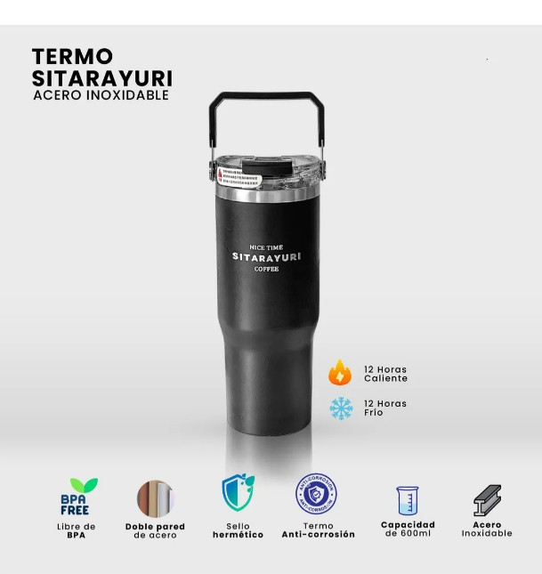 Lleva tus bebidas siempre a la temperatura perfecta con este termo premium de 600 ml. Fabricado en acero inoxidable de alta calidad, combina resistencia, diseño moderno y máxima practicidad para tu día a día.