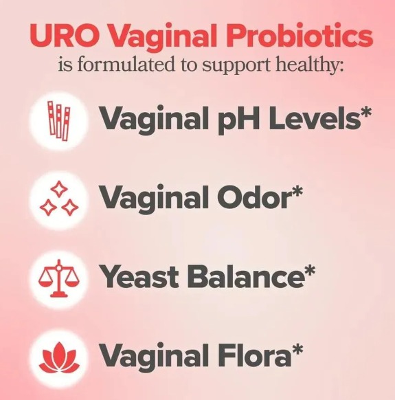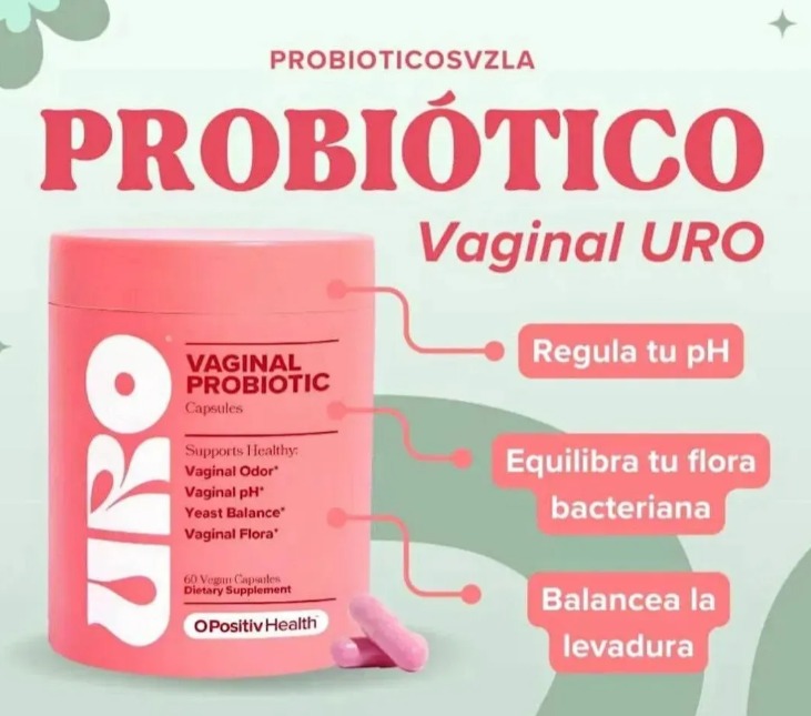🌸 URO Vaginal Probiotic Suplemento probiótico vegano 🌿 con 60 cápsulas que ayudan a mantener el equilibrio del pH, flora y olor vaginal 💖. Promueve una salud íntima óptima y natural ✨.